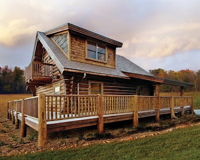 Economical and modestly sized log cabins fit easily on small lots in the woods or lakeside.