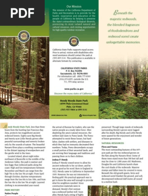 The parks gentle trails lead through a spacious riverside meadow and the skyscraping redwoods of the big hendy and little hendy groves.